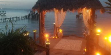 We love to host weddings here on our waterfront. Weddings require that at least 2 rooms be rented and that the guest list is under 20 due to our parking. Either Don Rodgers or Renee Clem, both Owners and both ordained ministers, can perform your ceremony onsite for an additional $100 fee. Wedding set-up and hosting is $500 which covers site decoration, seating for guests and set up for wedding party, decoration and setup of Palapa at waterfront and whatever else you may need. Music and carry flowers are not included. Additional charge for extra flowers or candle ceremony items may be necessary. We specialize in making the day all about you and your guests. Please see our pictures of past weddings and feel free to call us with any questions.
